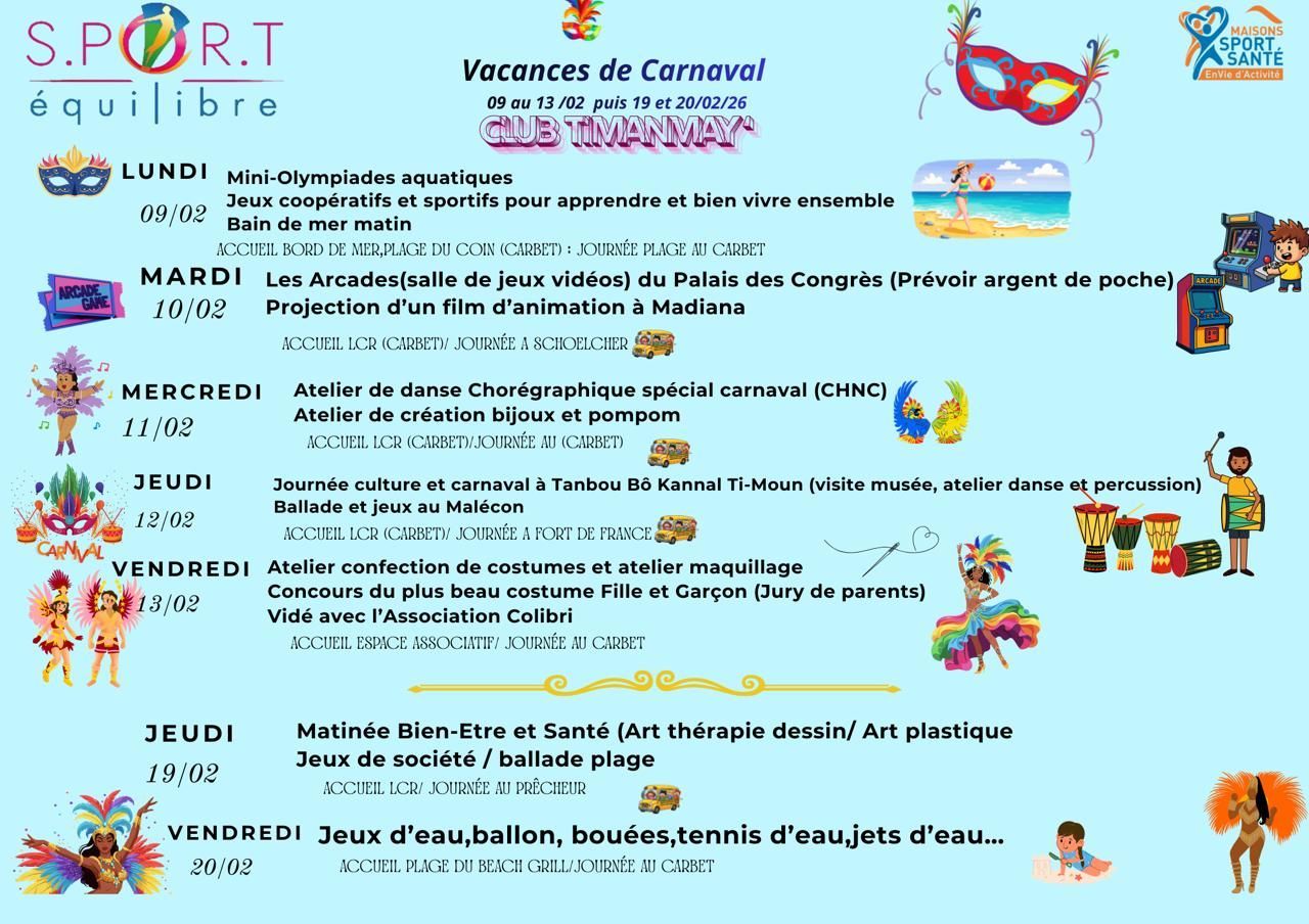 L'association SPORT ÉQUILIBRE-MAISON SPORT SANTE DU NORD a débuté son club d'activités de Pâques à l'Espace Associatif & Culturel du Carbet. Les enfants et adolescents passent de super bons moments. avec de multiples activités.. Que du bonheur !!